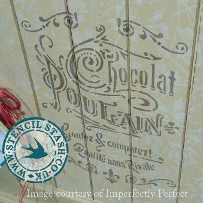 A detailed vintage French stencil, based on an authentic label for a brand of chocolate. Perfect for adding a vintage chic feel to your furniture and craft projects.